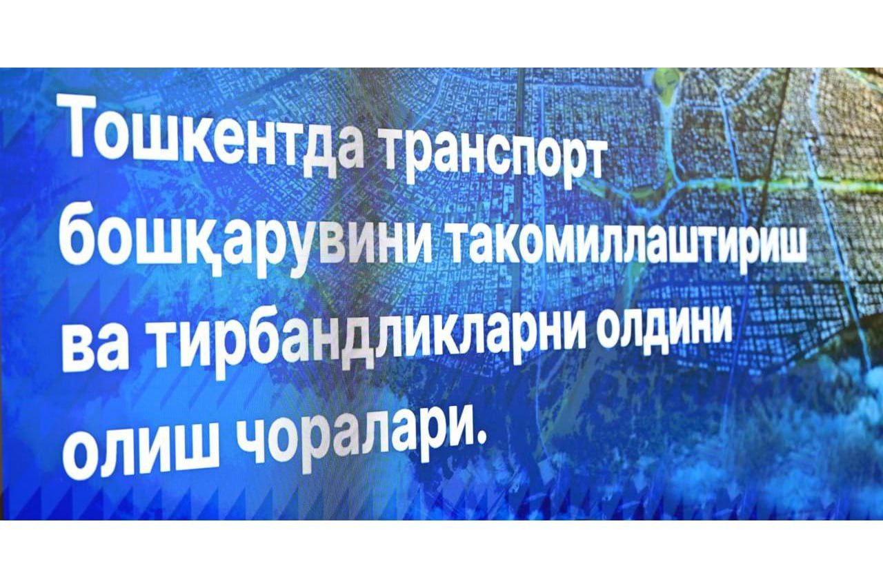 Shu maqsadda Toshkent shahrida yagona yo‘l harakatini tashkil etish markazini yaratish taklif qilindi. Ushbu markaz transport va piyodalar oqimini tahlil qilish va modellashtirish, intellektual transport tizimini joriy etish va boshqarish, transport master-rejasi va karkasini ishlab chiqish, yuk tashishlar hamda shahar parking infratuzilmasini tashkil etish, elektr quvvatlash tarmoqlarini rivojlantirish va individual harakatlanish vositalaridan foydalanishni rag‘batlantirish bilan shug‘ullanadi.