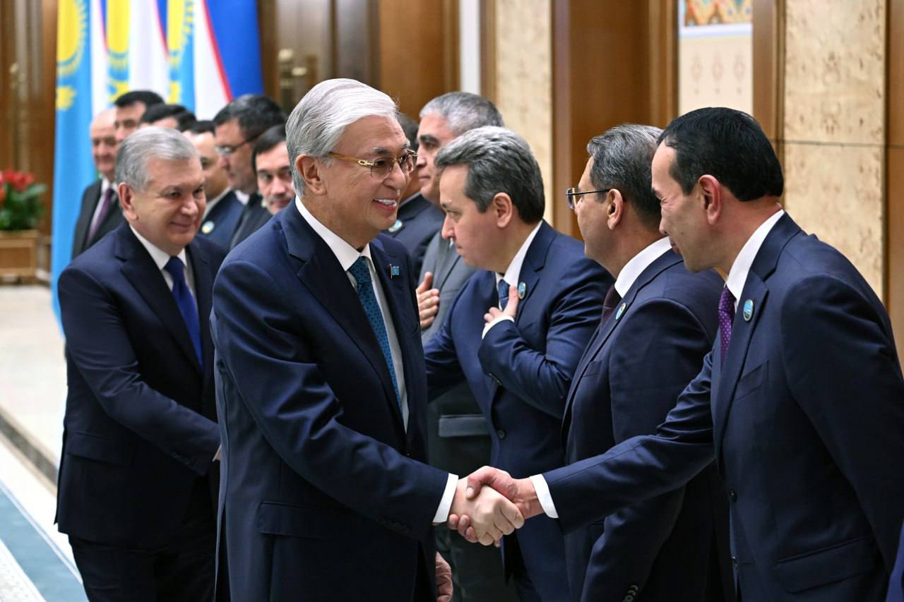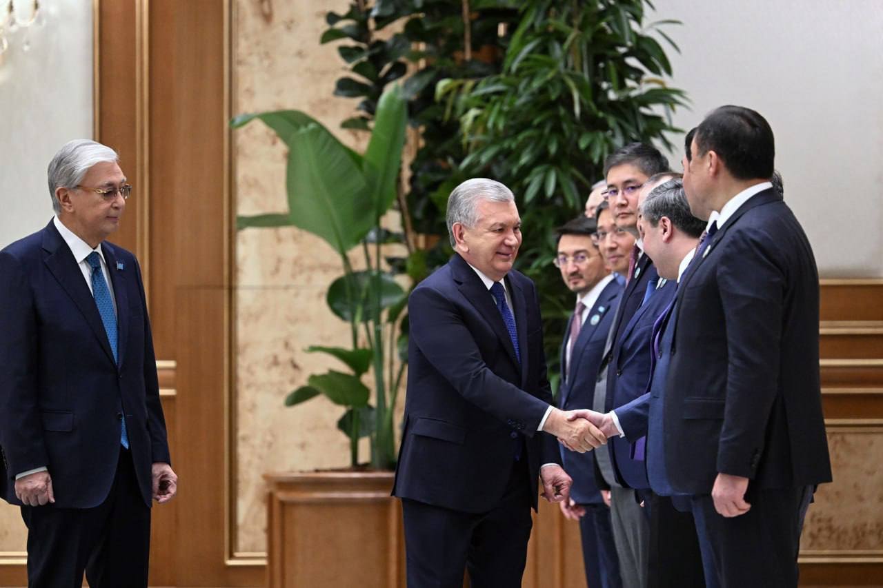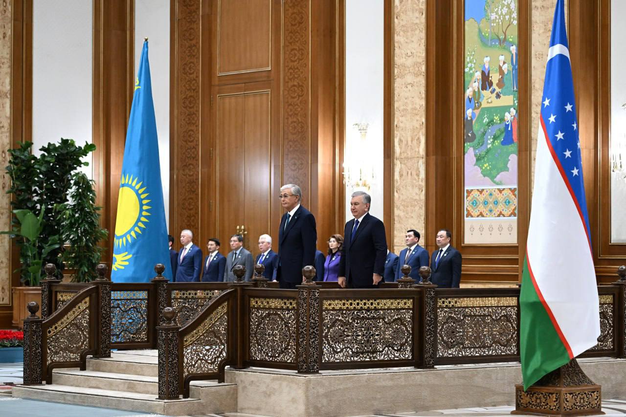 Shundan so‘ng Shavkat Mirziyoyev va Qasim-Jomart Toqayev faxriy qorovul safi oldidan o‘tib, delegatsiya a’zolari bilan salomlashdi.