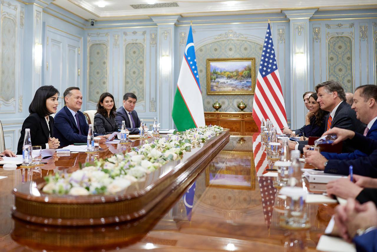 Saida Mirziyoyeva AQSH Prezidentining Janubiy va Markaziy Osiyo bo‘yicha maxsus vakili Serjio Gor va Davlat kotibi o‘rinbosari Kristofer Landau boshchiligidagi Amerika delegatsiyasi bilan konstruktiv uchrashuv o‘tkazdi.